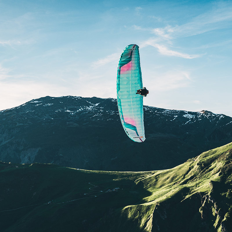 The Kode 2 P captures the playful spirit of the Kode series in an even lighter and more compact version. From the very first steps, inflation is smooth and progressive, the wing naturally rises above the pilot and allows quick take-offs, even when the air is light. In the air, you can feel improved pitch and roll stability, making handling more reassuring, especially during transitions or speed changes.